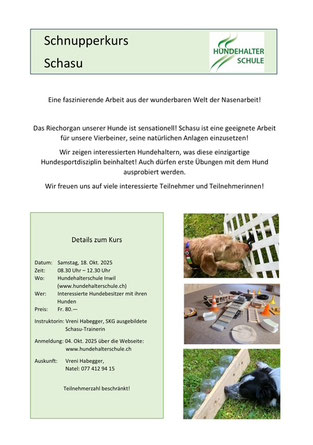 Wir führen im Oktober gleich zwei Schnupperkurs durch.